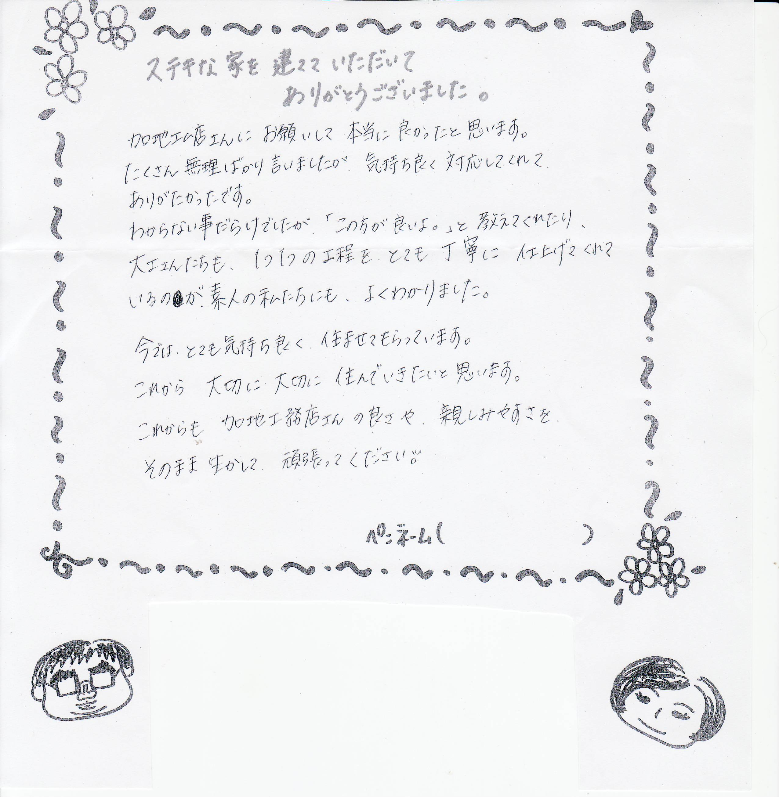 加地工務店さんはいつも迅速に提案・対応していただき、安心して暮らすことができます。