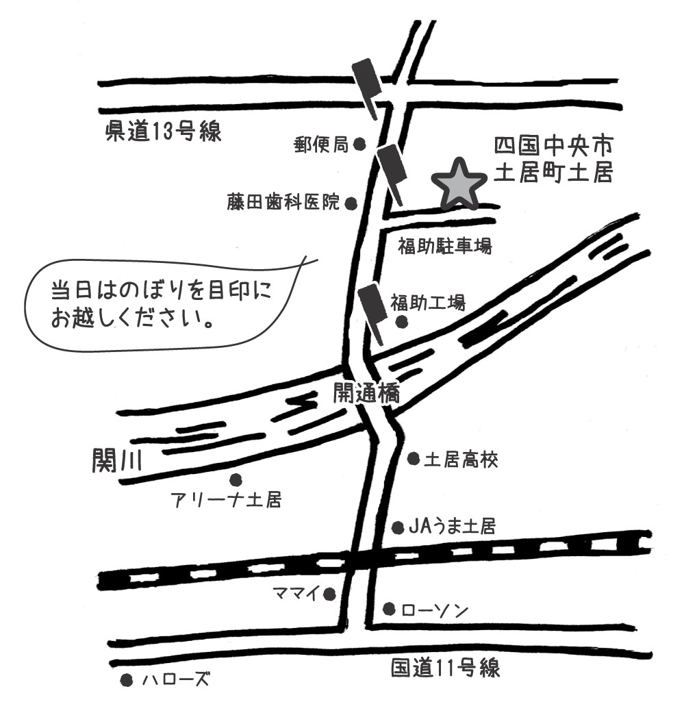 [googlemap lat=”33.970742485726376″ lng=”133.42926621437073″ align=”undefined” width=”233px” height=”210px” zoom=”17″ type=”G_NORMAL_MAP”]愛媛県四国中央市土居町土居2588[/googlemap]