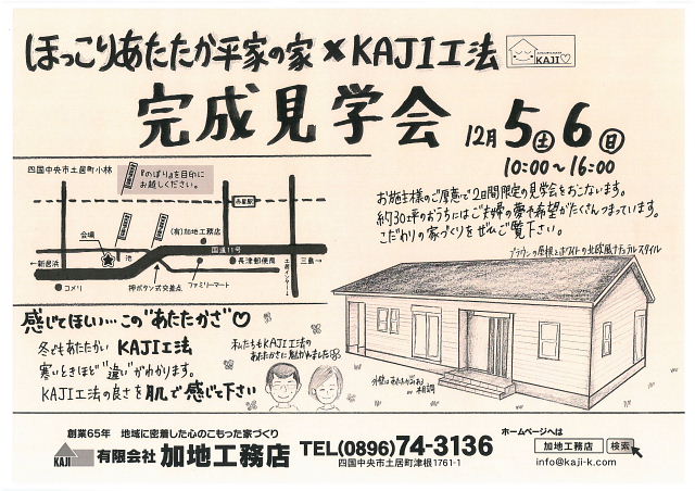 ほっこりあたたか平屋の家 完成見学会 12月5日(土)6日(日)