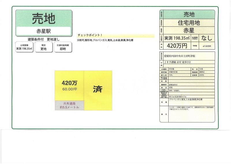 【限定1区画】420万 60坪更地!!(建物条件付き)