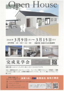 四国中央市豊岡町にて平屋の完成見学会を開催します。