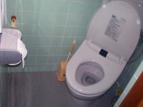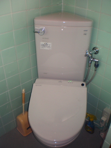 和式トイレを洋式トイレに替えたいけれど、トイレが狭いので、コーナーを利用して、リモデル商品の便器にしました。