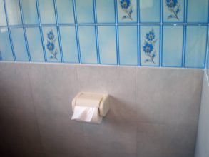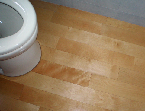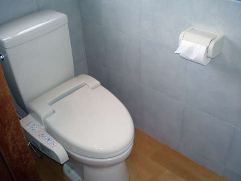 2階の和式トイレを、洋式トイレ(簡易水洗)にリフォームしました。床は、無垢のフローリング、壁は、上部は、ほとんどいたんでいなかったので、そのまま残し、下部に健康建材エコカラットをはりました。エコカラットは、トイレの悪臭を軽減してくれるので、芳香剤を使っていません。