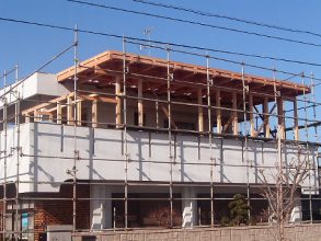 鉄筋コンクリートづくりの家を木材(木造)を使って増築しました。鉄筋部分と同じように見えるように仕上げました。