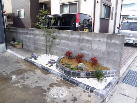 化粧ブロックの塀は道路からの目隠し機能もかねています。