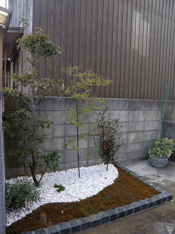 モノトーンのカラーでまとめ、和モダンなお庭に仕上げました。