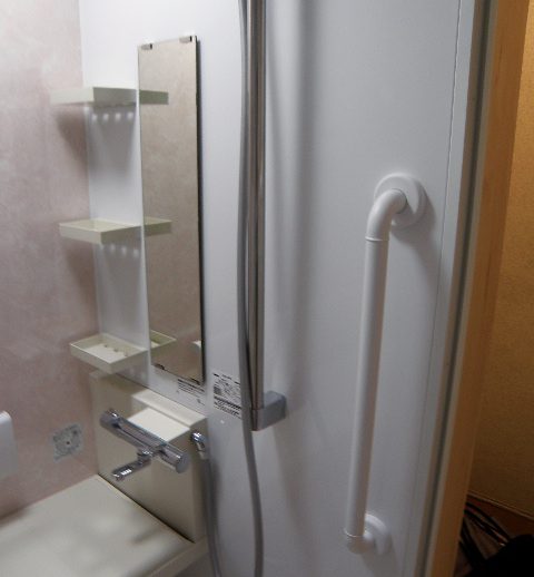 浴槽内と壁に手摺を取付移動を楽にしました。