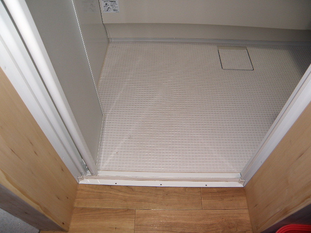 座ったままでゆっくりシャワーができるベンチカウンターありのタイプを選びました。(TOTO サザナ)