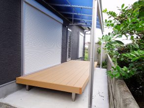 敷地を最大限に利用して、リビングから続くウッドデッキを設置しました。