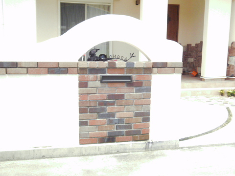 子供達の成長のあかしに、塗り壁の塀に家族の手形をいれました。
