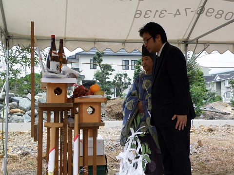 「平屋プラス一部2階建て」というのは、新しいデザインだと思います。このデザインに至るまで1年半という長い間、何度も設計をやり直し、思い描くイメージを形にしてくれた加地工務店さんには感謝しています。四国中央市初の長期優良住宅認定となり、スーパーウォール工法による快適生活を手に入れました。私は四国中央市に実家があるわけではないので、加地工務店さんに家が建てたいことを相談してから、まず、土地を探してもらうことから始めました。何箇所も探していただき、見せていただき、納得できる土地に出逢うまで探してもらいました。そして、設計にも十分に時間をかけたので、加地さんは大変だったと思いますが、満足できる家を建てることができました。実際に住んでみると、夏は涼しく、冬はあたたかく、家に守られているという感じがします。また、オール電化がこんなに経済的(うちでは光熱費が40%下がりました。)だし、キッチンが油で汚れないなど、良いことばかりです。住み始めると、庭を整備したいとか、設計の時には考えなかったいろいろな思いが出てきますが、加地工務店さんはいつも迅速に提案・対応していただき、安心して暮らすことができます。やはり大きな買い物になりますので、早くて安い家よりも、自分が建てたい家を実現させてくれた加地工務店さんでよかったです。何十年経っても自慢できる家ができました。