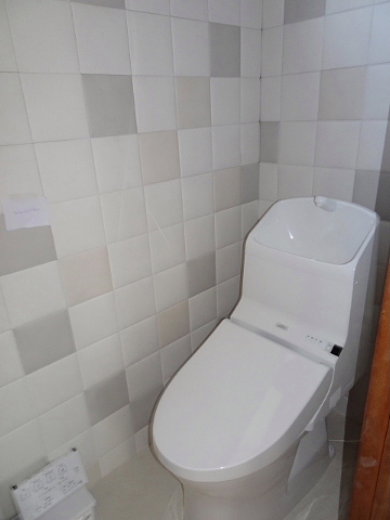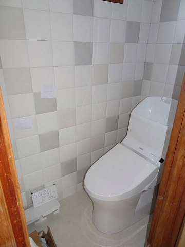 タイルは、パステルカラーがアクセントになった、ベージュやグレーが使われたモザイク調で、やわらかい雰囲気の空間になりました。