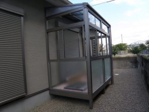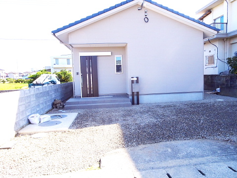 家のまわりには砂利を敷き詰め、奥様の希望で、サニージュも設置しました。
