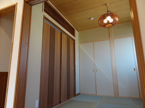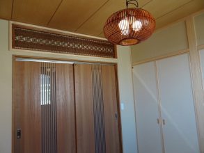 以前この場所にあった祖父の家。解体するときにとっておいた欄間を新築で使用しました。