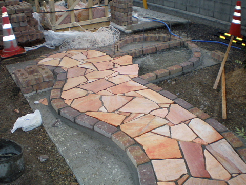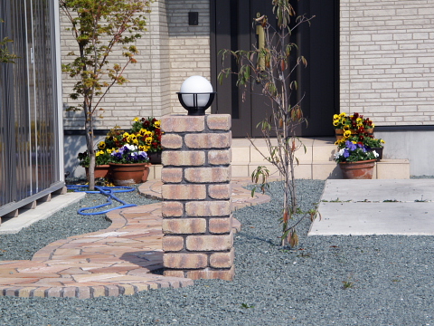 本物の素材感にこだわり、アプローチを自然石にしました。