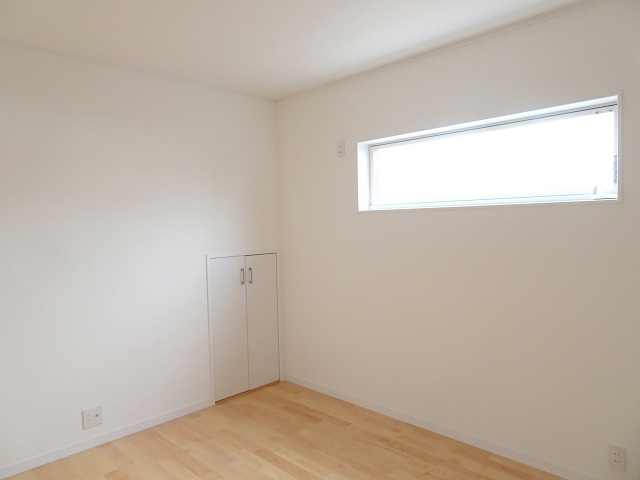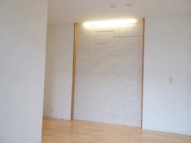 木材で仕上げた天井に、正面は収納を造作しました。ホワイトを基調とした内装にやわらかい木目がよく映えます。