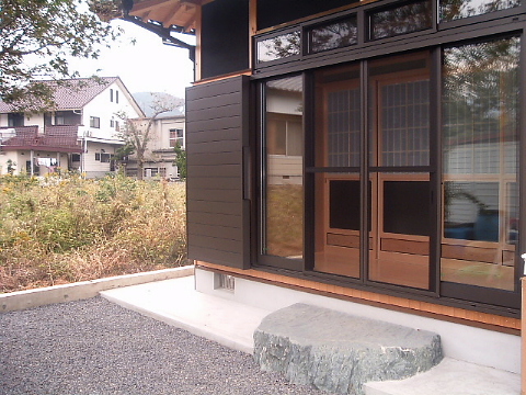 腰板・柱は、桧材。 柱石は、たんくら(丹波産 鞍馬石)です。たんくらは、年月を経過するにつれて、美しいさび色に変色します。