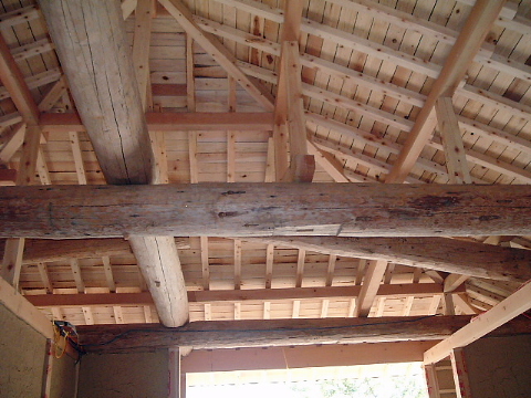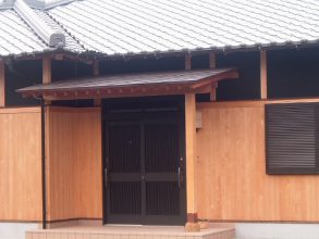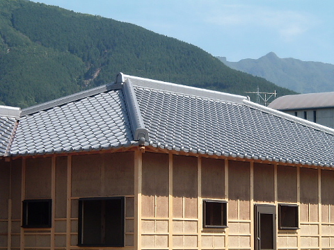 屋根材は、淡路のいぶし瓦。いぶし瓦は、最良の焼成方法、燻化条件により独特の優美な光沢と色彩の冴えを生み出し、いつまでも格調の高いいぶし銀の美しさを保ちます。本格桧づくりの家の屋根材に大変調和がとれます。また美しさだけでなく、経済性・防水性・耐火性・耐寒性・修復性にもすぐれています。