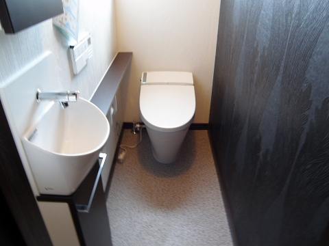 白を基調にした明るく若々しいモノトーンスタイルの住まいです。基本は、ホワイトで、あくまでシンプルに。内装・外装ともに部分部分をダークな色で、すっきり引き締めました。
