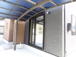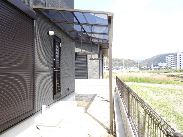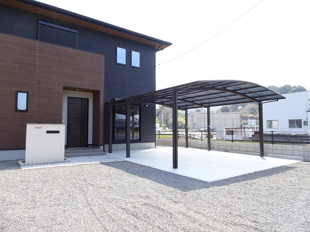 正面にはカーポート、裏にはテラスを設置し