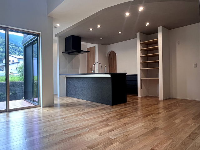 Rの開口やキッチンのRの天井などRを多くデザインに取り入れました。