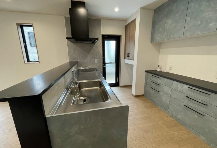 キッチンはグレー調にまとめかっこよくかつおしゃれな空間に仕上がっています。