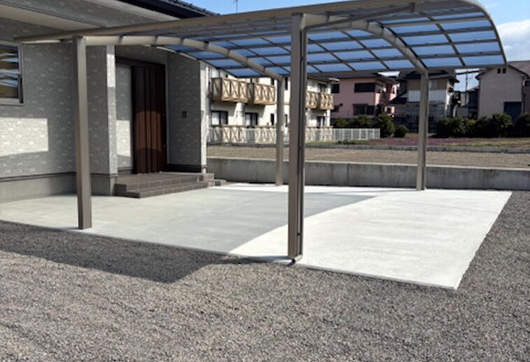 カーポートは、柱を先に立ててコンクリートを打って設置します。