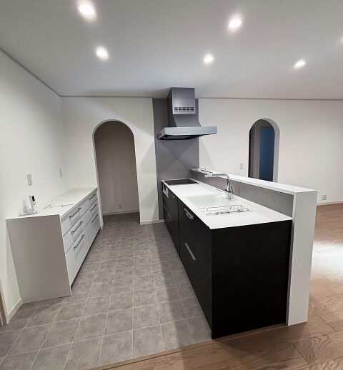 アーチ開口を玄関・寝室・LDKに取り入れました。